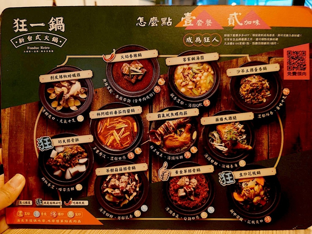 不論天熱天冷,我家吃火鍋的頻率至少一週一次,這大概也是為什麼我的肚子愈來愈圓的原因之一(?)最愛麻辣鍋、石頭火鍋、藥膳這類型湯頭濃郁的湯底,狂一鍋菜單上的10款湯頭都讓我超好奇,和一般常見的海鮮、昆布、咖哩、起司完全不同,像是霸氣魷魚螺肉蒜、客家鹹湯圓、生炒火枝鍋、沙茶土雞蛋香鍋,都是台菜很有名的料理,知名台菜怎麼結合火鍋讓我們繼續看下去。