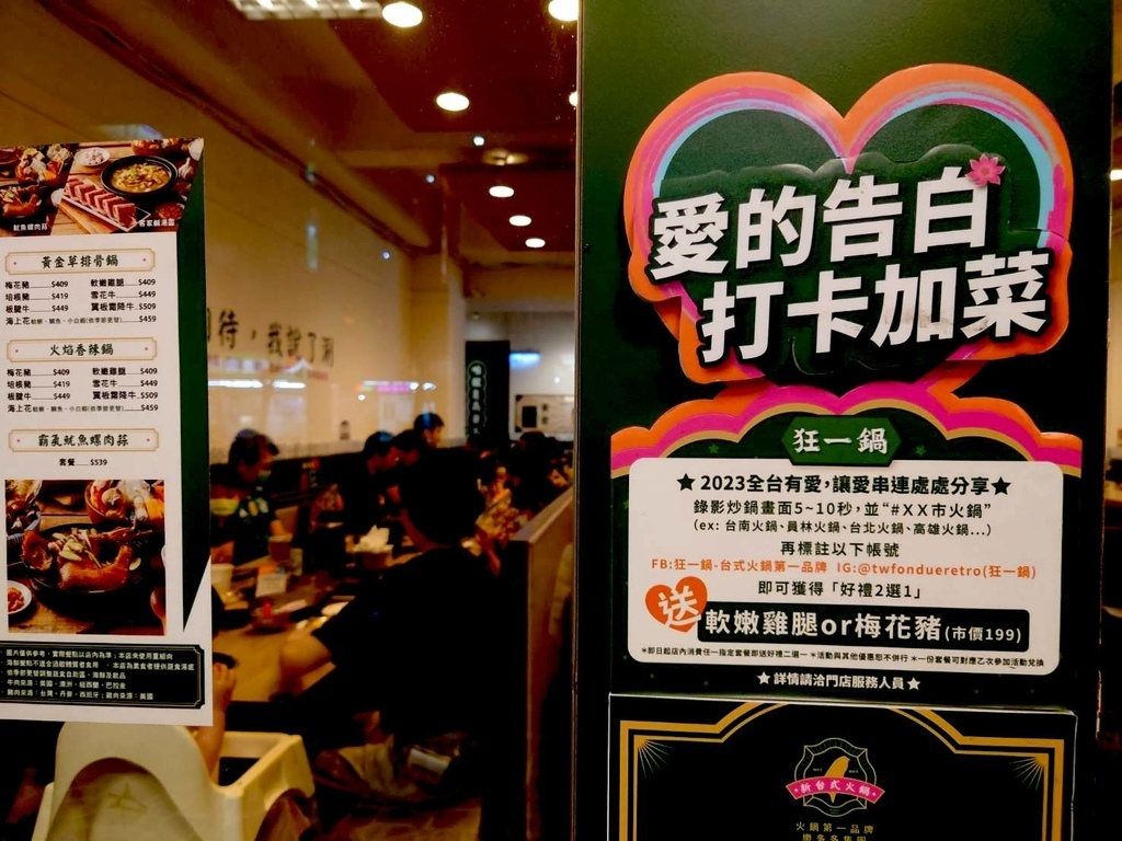 即日起至門市用餐錄影炒鍋畫面5~10秒, 發FB貼文或IG限動,記得TAG #狂一鍋xx店 #台式爆炒火鍋 FB : 狂一鍋-台式火鍋第一品牌