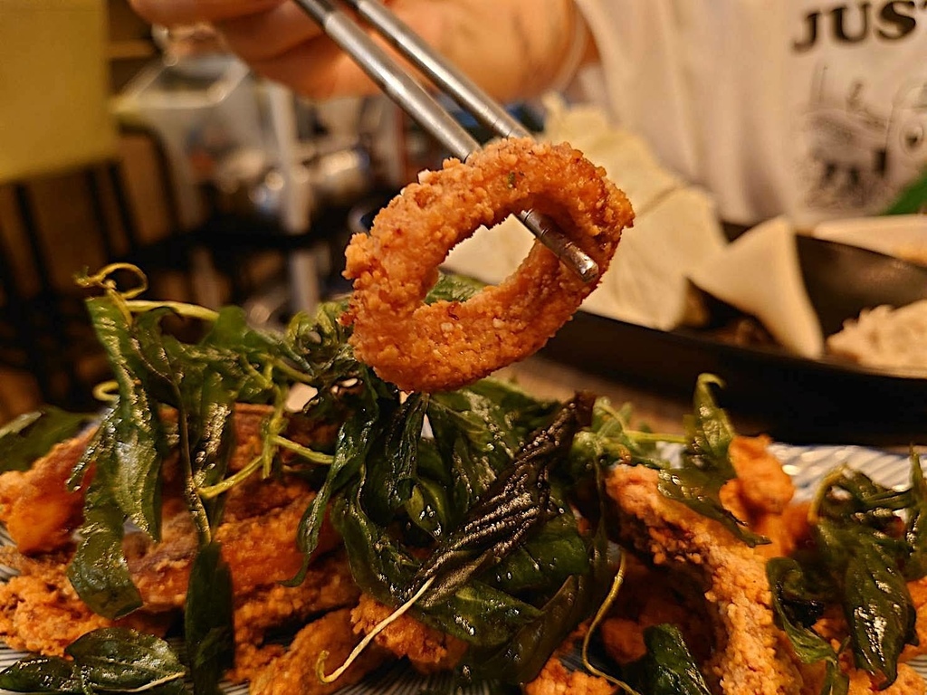 狂一鍋台式火鍋還有現做的熟食,我們點了一份炸魷魚,哦哦哦,好想來一杯啤酒啊!超讚的下酒菜。